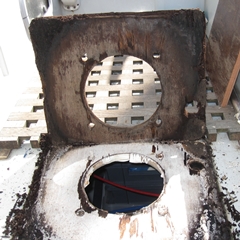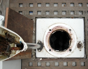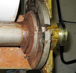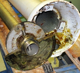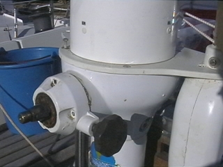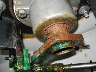 10 ans plus tard, quand le bateau a 18 ans, la rouille s'est introduite dans la colonne de barre. L'eau rouillée suinte dans la cabine arrière, la barre a pris du jeu, les roulements à bille de la colonne ont rouillé et sont détruits. Il est temps d'intervenir sérieusement.