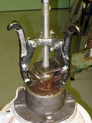 L'extraction de la roue dentée puis du roulement à bille supérieure est plus délicate, puisqu'on n'a pas 3 points d'appui pour l'arracheur.