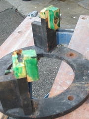 Les vis tenant le plateau, soudées par l'oxydation, cassent au démontage. Il faut repercer et tarauder diamètre 5.