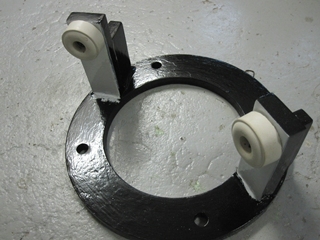 La couronne contre plaque dans la cabine arrière est atteinte par la rouille. Ponçage et peinture anti-rouille, puis de nouvelles butées de fin de course en caoutchouc.