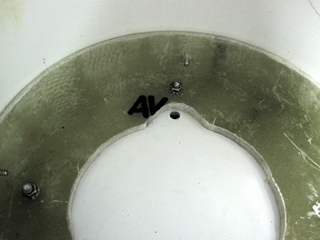 Le puit de compas est solidement fixé sur le plateau par une "équerre" cylindrique, fabriquée en fibre de verre / époxy.