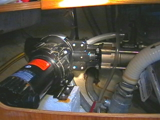 A noter que le premier passe-coque de prise d'eau de mer que j'avais installé était un passe-coque simple, et quelle ne fut pas notre surprise quand nous avons du constater que pendant les traversées, la pompe ne parvenait pas à pomper l'eau défilant sous la coque, probablement en raison d'une cavitation à l'entrée du passe-coque. Je l'ai donc ensuite remplacé par un passe-coque à crépine, qui a orienté le flux d'eau et permis l'aspiration pendant la marche du bateau.