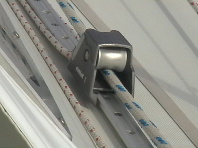 Nous sommes très satisfaits de ce choix. Un seul inconvénient: les frottements importants dans les poulies de renvoi de pied de mat, dans les poulies sur le roof, ainsi que l'usure de la drisse de grand voile dans son coinceur. J'ai rajouté ces poulies de renvoi de chaque côté du roof.