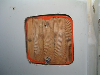 Une découpe de la cloison en polyester, un moule en bois recouvert de cire de démoulage, une couche de gel coat, quelques couches de fibre de verre enduites de résine, et on attend que ça polymérise.