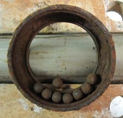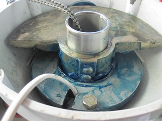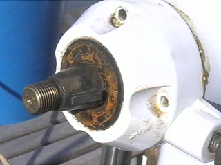 10 ans plus tard, quand le bateau a 18 ans, la rouille s'est introduite dans la colonne de barre. L'eau rouillée suinte dans la cabine arrière, la barre a pris du jeu, les roulements à bille de la colonne ont rouillé et sont détruits. Il est temps d'intervenir sérieusement.