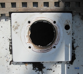 Mauvaise surprise: le contreplaqué du socle est complètement pourri, délité, gonflé d'eau qui goutte dans la cabine