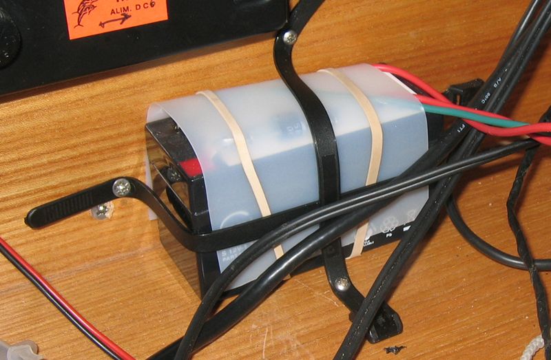 J'utilise une batterie tampon de faible capacité et faible cout, qui alimente l'écran du PC (c'est l'équipement sensible sur Boisbarbu, qui se mettait en état instable lors d'un démarrage moteur ou guindeau), pendant le pic bas de la batterie de service.