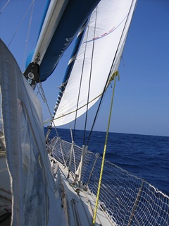 L'étai largable m'a paru tout de suite indispensable. Dés 25 N de vent au près, je roule le gènois pour le remplacer par un foc de route, ou foc 2 (17 m2 sur Boisbarbu).