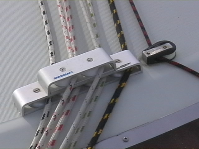 Nous sommes très satisfaits de ce choix. Un seul inconvénient: les frottements importants dans les poulies de renvoi de pied de mat, dans les poulies sur le roof, ainsi que l'usure de la drisse de grand voile dans son coinceur. J'ai rajouté ces poulies de renvoi de chaque côté du roof.