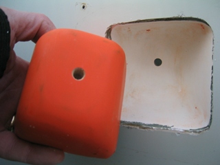 J'ai voulu changer ça, et rendre la commande d'arrêt facilement accessible, tout en la protégeant de la pluie et des chocs. Le meilleur endroit que j'ai trouvé : à bâbord, sous le siège du barreur, en arrière du panneau de contrôle du moteur.