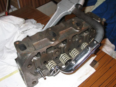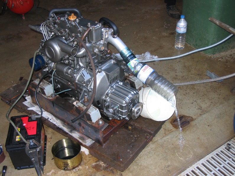 J'ai pris un moteur yanmar 3GM d'occasion pour remplacer le Volvo d'origine , ce moteur a 3000 heures de marche et bien qu'il fonctionne correctement j'ai décidé de faire une petite remise à niveau pour repartir sur de bonnes bases . J'ai fait cette remise à niveau conformément aux indications de la doc atelier yanmar (télécharger le fichier pdf (100Mo), je vais essayer d'en relater le déroulement . La question du "niveau" de remise en état s'est tout de suite posée , j'ai pensé qu'à cette échéance on ne pouvait pas faire moins qu'une visite de culasse , après déculassage on verra suivant l'état des cylindres si on poursuit les démontages ... PREMIERE ETAPE : DESHABILLAGE , DECULASSAGE Le déshabillage consiste à démonter tous les accessoires qui sont sur le moteur : - alternateur et pompe eau de mer - filtre eau de mer et durites - tuyaux d'injection , filtre à gazole , filtre à air - échappement réfrigéré et collecteur d'admission d'air - déposer tous les goujons Tous ces démontages ne présentent pas de difficultés particulières , il faut prendre son temps et être méthodique : je mets chaque sous ensemble dans une pochette plastique avec la visserie associée et je fais régulièrement des photos . Et il faut surtout boucher et protéger tous les orifices , en particulier la pompe injection et le circuit de graissage , sur les tuyaux injection ou de graissage qui ont été démontés , obturer les extrémités . Le déculassage n'est pas compliqué non plus : - dépose de la culbuterie ( faire attention à ne pas perdre une des petites coupelles qui sont sur le queues de soupapes ) - dépose de la culasse : desserrage dans l'ordre inverse de l'ordre de serrage. CONSTATATIONS APRES DEMONTAGE En résumé on va dire : pas trop de mauvaises surprises . Le but principal de ces démontages était de voir l'état des cylindres ...et les cylindres sont très bien : couleur mate avec les trace de déglacage bien apparentes , aucune rayure visible , ouf .. on n'ira pas plus loin en démontage . Autres constatations : - circuit eau de mer pas mal entartré , il y a des conduits entre bloc moteur et culasse complètement bouchés - échappement plutôt calaminé - coté eau de mer de l'échappement réfrigéré complètement oxydé , entartré emm.... voir photo - tuyau de distribution de l'huile de graissage bien oxydé - sécurité température HS - Et un truc qui m'embête un peu plus mais au niveau de l'inverseur ( moi qui suis sujet aux pannes d'inverseur) , le tourteau d'accouplement de sortie d'inverseur était desserré et avait battu . En fait ce moteur avait eu un problème d'inverseur et avait été réparé ( mal réparé ) l'écrou de serrage du tourteau n'avait pas été freiné et donc il s'est desserré , le tourteau est foutu mais a priori l'arbre de sortie inverseur est intact ( a vérifier ) de plus le réglage de la fourchette d'inversion est complètement nul , et il faut donc espérer que les cones d'embrayage n'ont pas souffert ( à vérifier aussi). Evitez de faire réparer un inverseur à Bastia parce qu'ils ont l'air particulièrement nuls !!! PROGRAMME DES FESTIVITES - déshabillage de la culasse , détartrage , contrôle des soupapes , guides et ressorts , rectification des soupapes et des sièges , contrôle des dépassements après rectification et remontage - détartrage du bloc moteur - détartrage de l'échappement réfrigéré - contrôle thermostat et remplacement sécurité - remplacement des durites - remplacement injecteurs - dépoussiérage alternateur et démarreur - remplacement filtres et courroies - remplacement tourteau d'accouplement , démontage inverseur pour contrôle , réglage fourchette - décapage moteur et accessoires pour peinture (primaire anticorrosion et finition) REMISE EN ETAT : - Echappement réfrigéré : J' ai commencé par ce qui était le plus impressionnant , le détartrage et le décalaminage de l'échappement et c'était une corvée : pratiquement une journée pour : - faire sauter le tartre et l'oxyde avec un petit burin , - dégager le gros de la calamine avec un grand tournevis - j'ai mis le tout à bouillir avec un puissant dégraissant - confection de plaques et pinoches pour faire une épreuve hydraulique de la partie gaz (pression du réseau ) : RAS - confection de joints , remontage du collecteur - Sous ensemble thermostat / sécurité : - nettoyage détartrage de la coquille - contrôle thermostat : ouverture complète 50°c , fermeture complète 40° donc conforme à la spécif constructeur - remplacement de la sécurité qui était HS - confection d'un joint - Détartrage bloc moteur : le bloc moteur était particulièrement entartré , les passages d'eau vers la culasse étaient soit partiellement soit complètement obstrués. La culasse étant enlevée , il y avait accès par dessus et par les orifices des zincs . J'ai commencé par tenter de dissoudre en remplissant avec de l'eau bouillante additionnée de lessive St Marc , j'ai fait plusieurs rinçages de cette manière puis élimination mécanique du tartre partout ou c'était accessible (avec une petite fraise sur une perceuse) . Ensuite rinçage à l'eau sous pression avec un petit tuyau qui pouvait rentrer dans le groupe en alternant avec des chasses à l'air comprimé qui permettaient de sortir les particules de tartre qui étaient tombées dans le bloc . Au final , enlevé beaucoup de m.... et un état de surface intérieur plutôt bon , pas de traces de corrosion sur les parties visibles. - Pompe eau de mer : Démontage complet de la pompe pour remplacement des roulements , du joint à lèvre et du rouet , nettoyage et remontage . - Culasse : la remise en état de la culasse commence par le démontage des soupapes puis la séquence nettoyage commence et cette là fut copieuse !! J'ai rarement vu une culasse aussi calaminée et entartrée , les conduits d'échappement étaient bouchés aux deux tiers et les passages d'eau compl